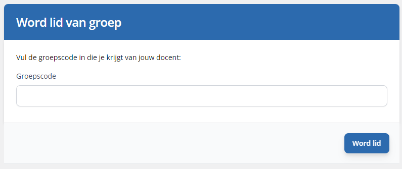 Leerlingen gaan naar ‘Mijn groepen’ en worden lid van een groep, door onder in dit veld de groepscode in te tikken: